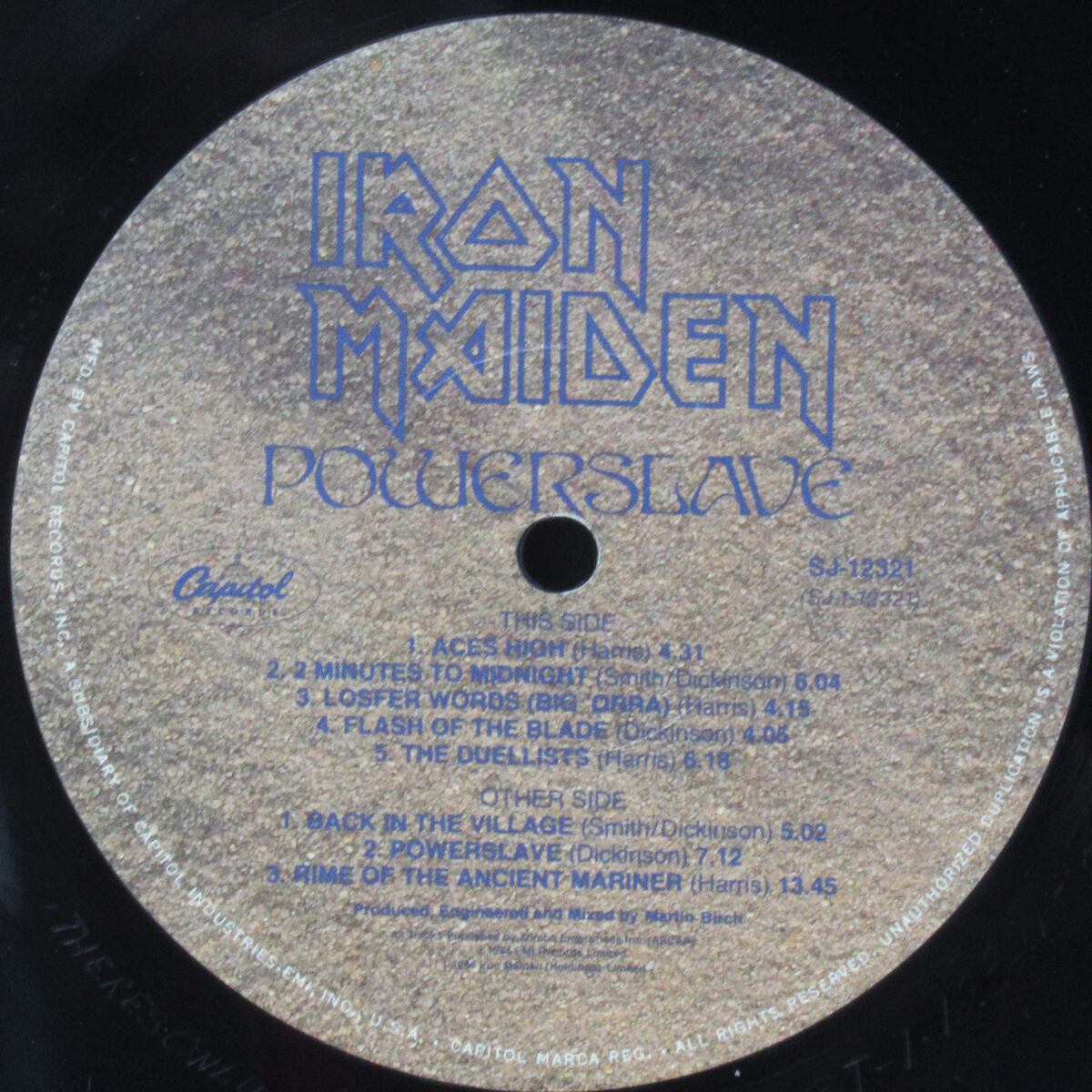 1984年リリース。メイデン、名盤中の名盤!捨て曲は一切ございません。”ACES HIGH”、”POWERSLAVE”などはメタル史上に残る名曲だと思います。現在、価格高騰中です!!