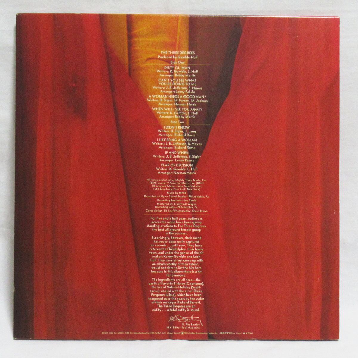 1973年リリース。日本でも大ヒットとなったスリーディグリーズの2ndアルバム。日本では1974年にリリースされ来日公演も行い、日本でのソウル人気を確立させたアルバムです。