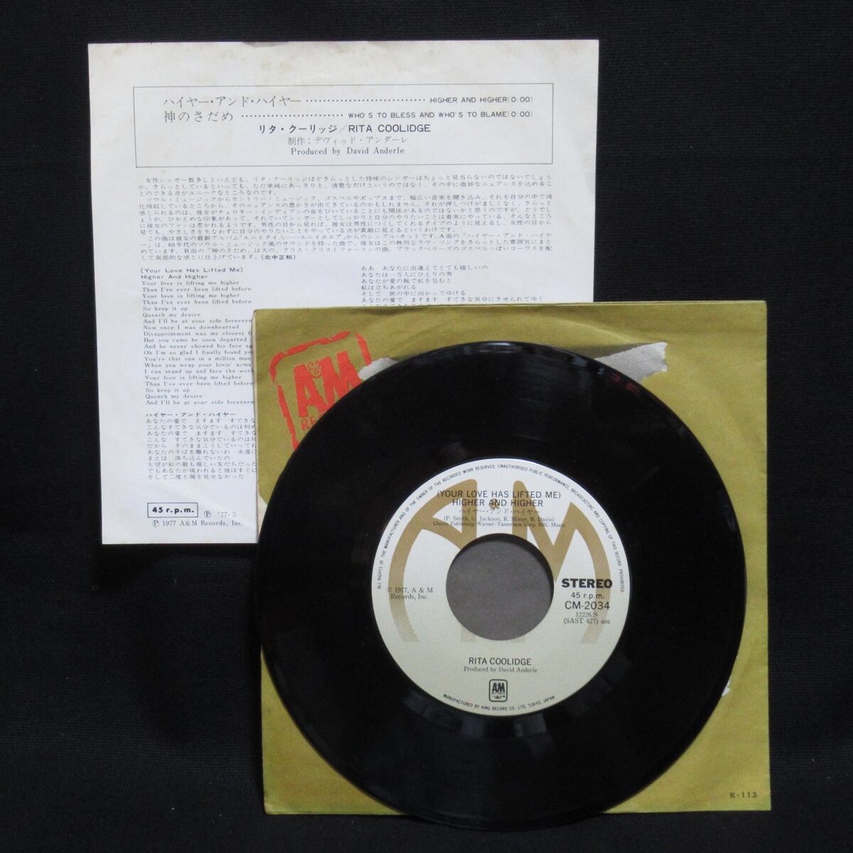 リタ・クーリッジ RITA COOLIDGE ハイヤー・アンド・ハイヤー / 神のさだめ
