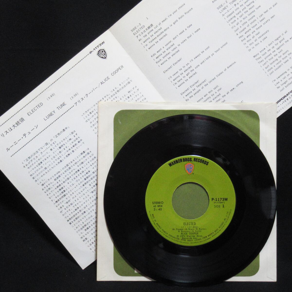 1972年リリース。73年にリリースされるアルバム”ビリオン・ダラー・ベイビーズ”に収録曲を先行発売。ナイスな邦題が実に昭和なレアレコードです!
