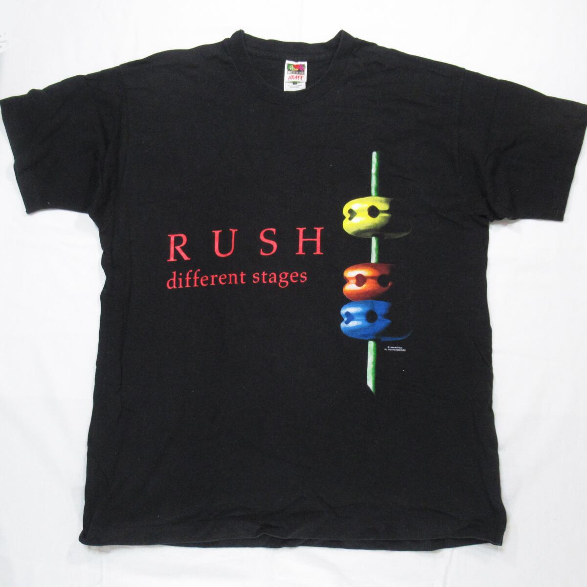 カナダの英雄、RUSH「DIFFERENT STAGES」のデザインTシャツ。RUSHのこの時代のTシャツは非常に珍しいです!レアアイテム間違いなし!!