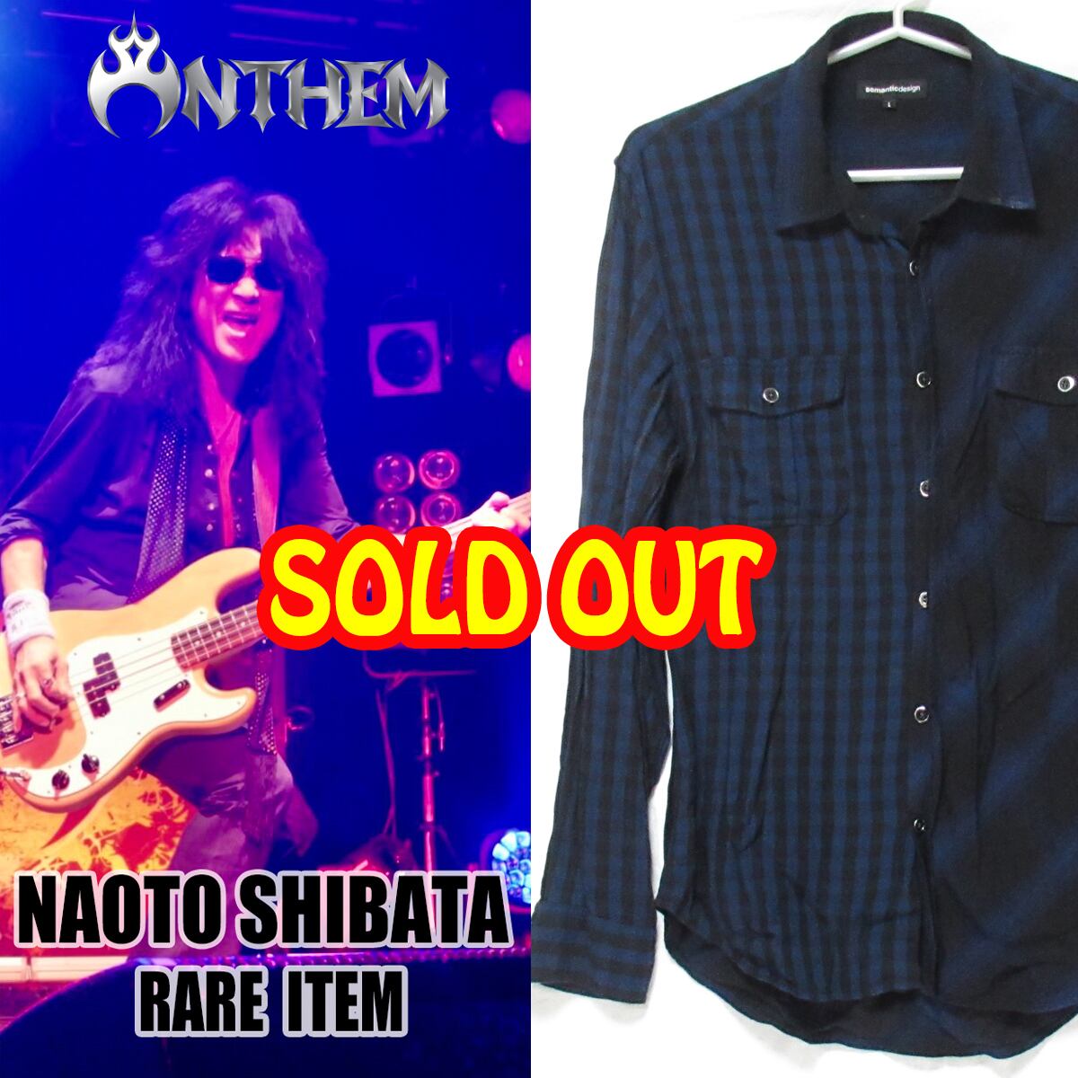 日本を代表するヘヴィメタルバンド、ANTHEMのリーダー、柴田直人氏が所有していたレア・アイテムです。自身が着用、使用していたものや試作サンプル品を含むオフィシャル・ツアーグッズなど希少品ばかり!これはオーナーの長年の友人でもある柴田氏本人のご厚意により、販売が実現化された大変レアなアイテムとなります!