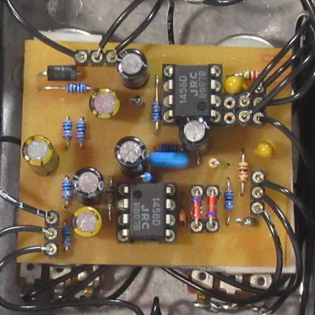 M社の「OD-808」に影響を受け、モディファイ製作したオーバードライヴ。GAINが2段階になるようレイアウトされ幅広いサウンドが再現可能!オペアンプは1458Dを2個搭載。