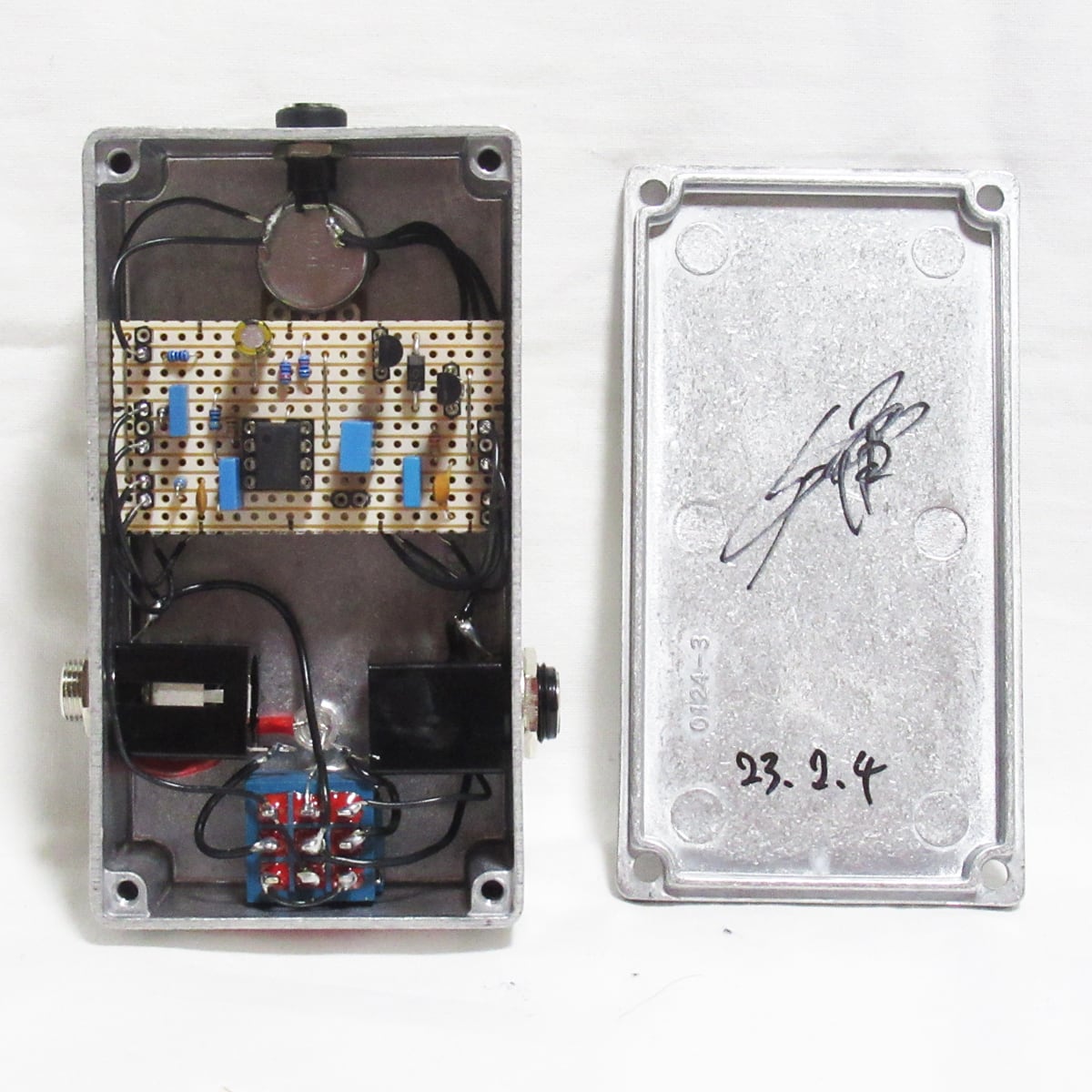 自身でエフェクターを作り、サウンド・メイキングをすることで、より「自分に合った好みのサウンド」を作り上げることができるのです。これらのエフェクターを作った結果として、自身のシグネチャー・モデルの基本となっていることは間違いありません。そしてプロ・アーティストによる正真正銘のオール・ハンドメイド・エフェクターなのです。なお、本人が短期間ではありますが使用しておりましたので、すべてのエフェクターが【USED】扱いとなります。