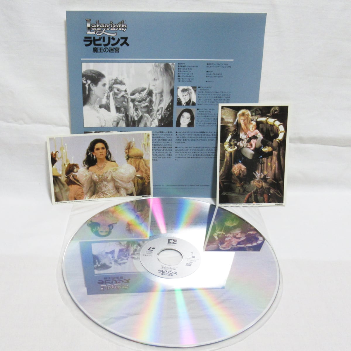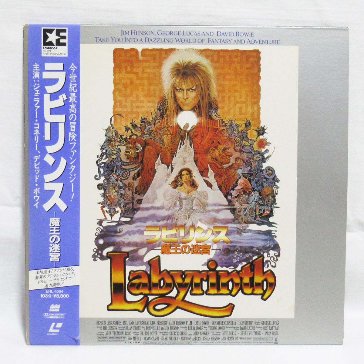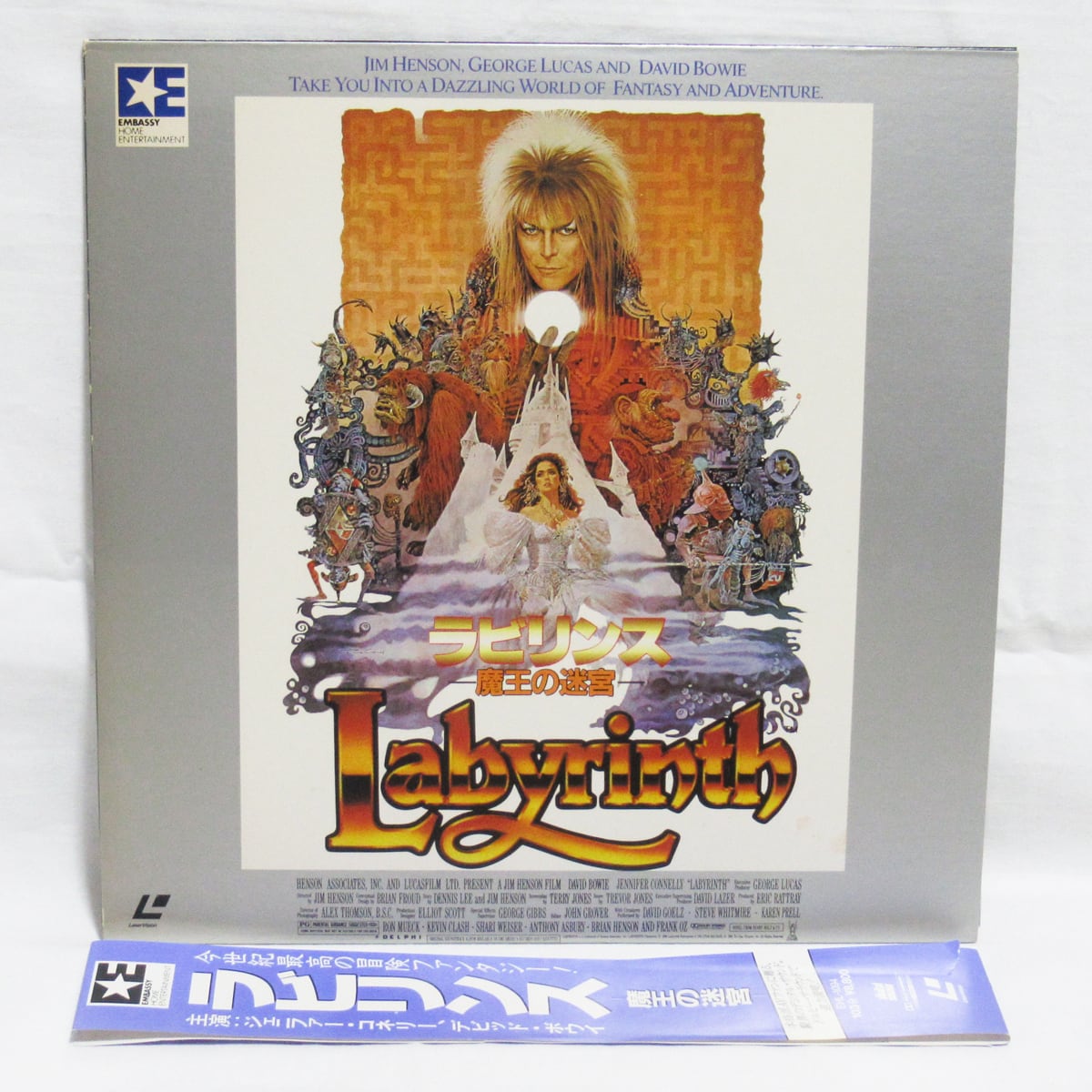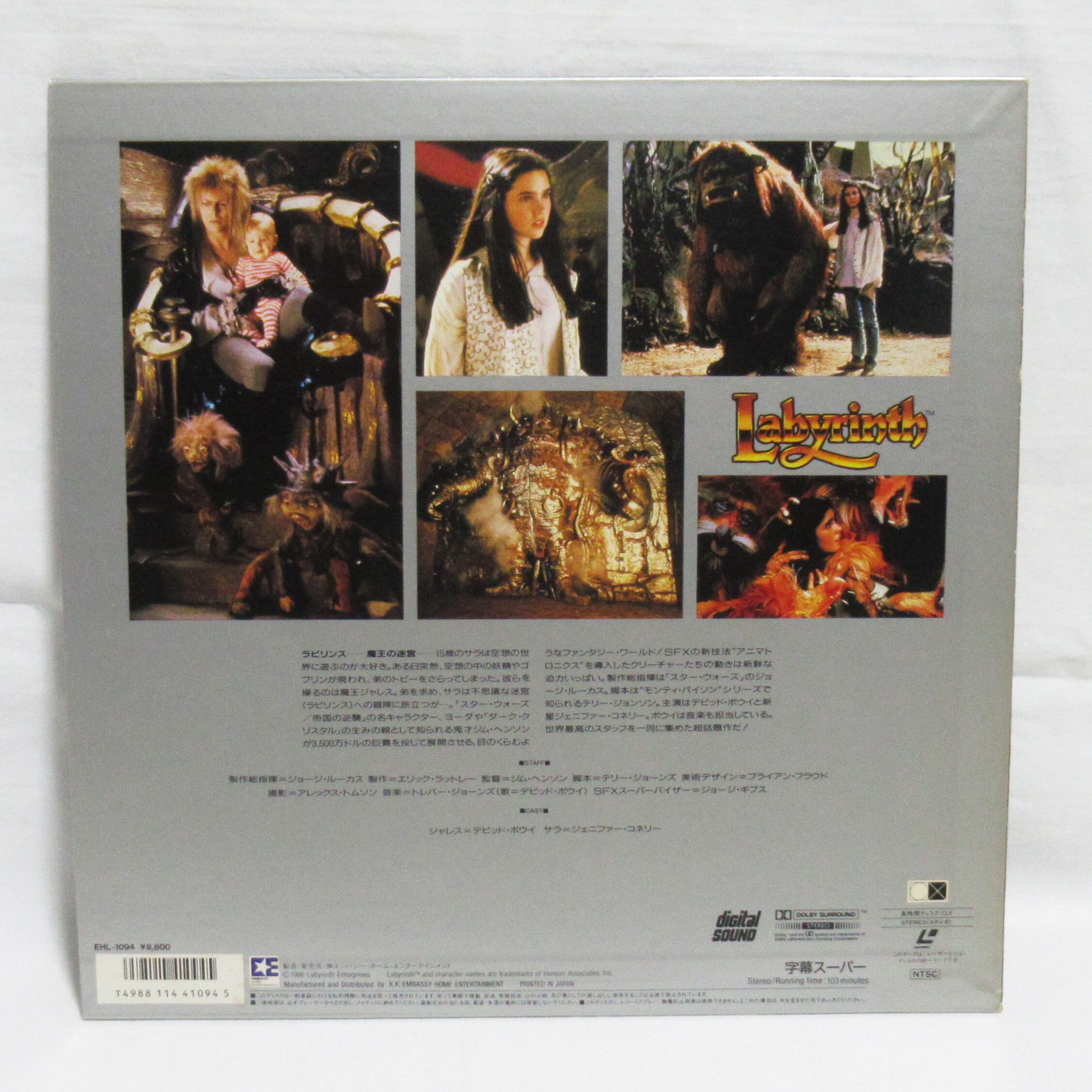 1986年作品。ジム・ヘンソン監督のファンタジック・アドベンチャー、デヴィッド・ボウイ主演の映画「ラビリンス・魔王の迷宮」のレーザーディスクです。現在では非常に希少です。